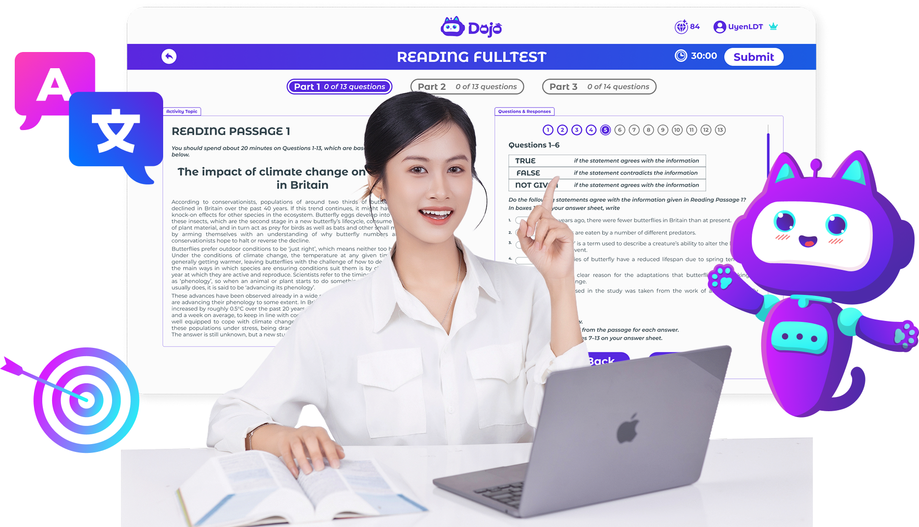 Automatically highlights key parts of the text based on each IELTS question type (e.g. TRUE/FALSE/NOT GIVEN, matching headings, summaries, etc.).